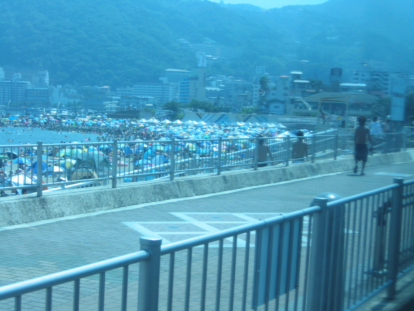 予定の時間からかなり遅れて熱海の海岸にさしかかると、海岸は芋の子を洗うような人だかりである。近年熱海の観光客は激減していると聞いていたが、どうしてどうして大変な人ごみである。花火大会があるからだろうか?そんなことを思いながら、やっと民宿「まきた」へ到着し、用意してもらっていたお弁当を食べる。