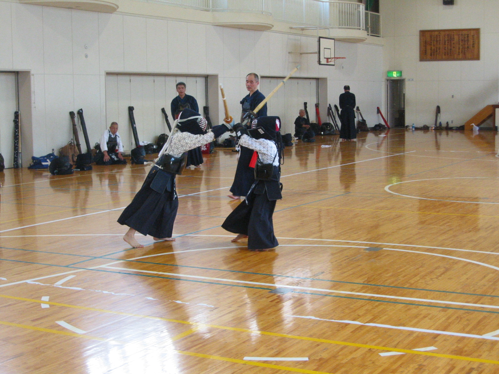 体育館にはすでに熱海の剣友が待っていた。ここでも剣道をする子どもたちの数が減り続けて現在は小学生が3人となってしまったという。