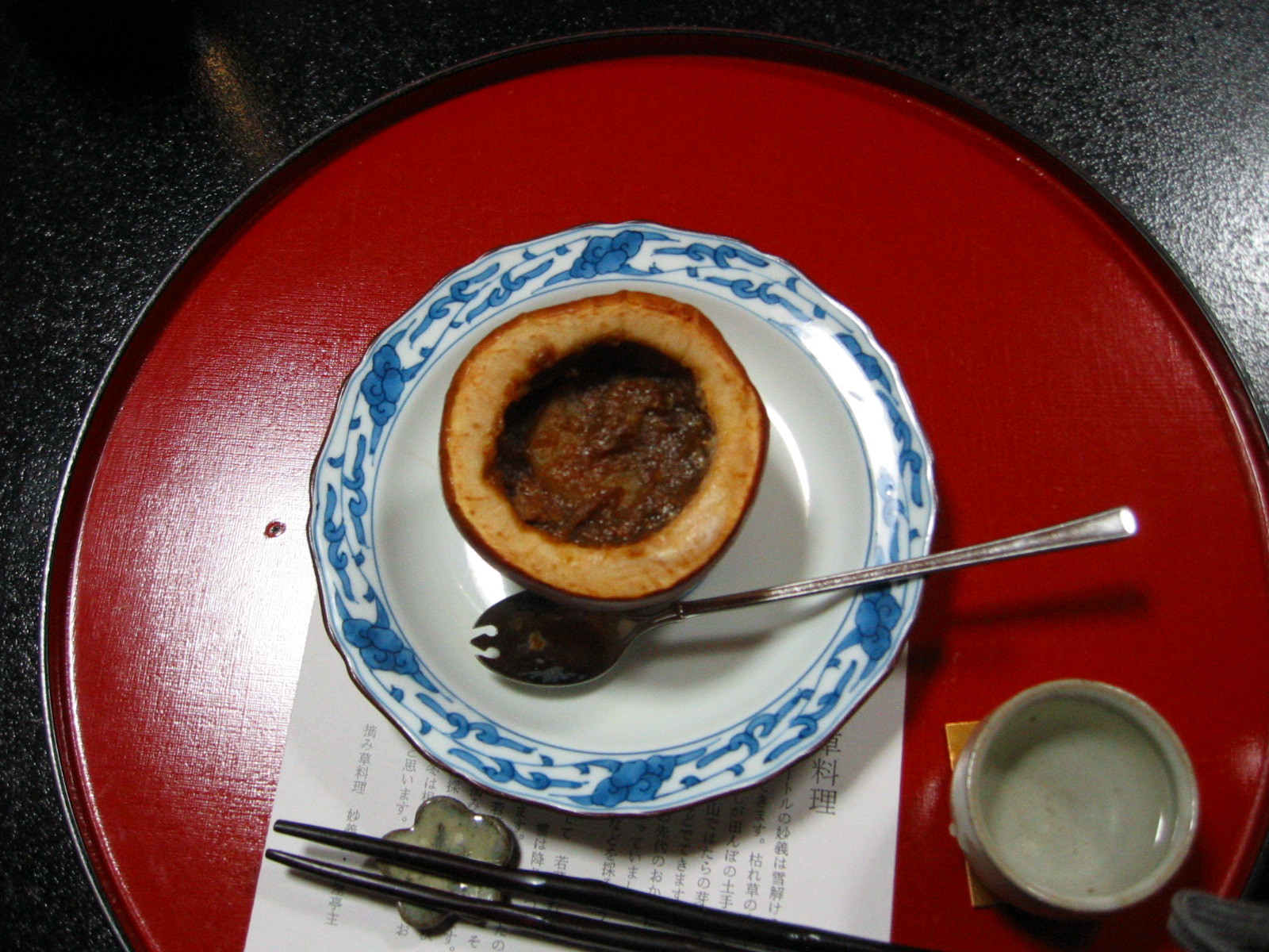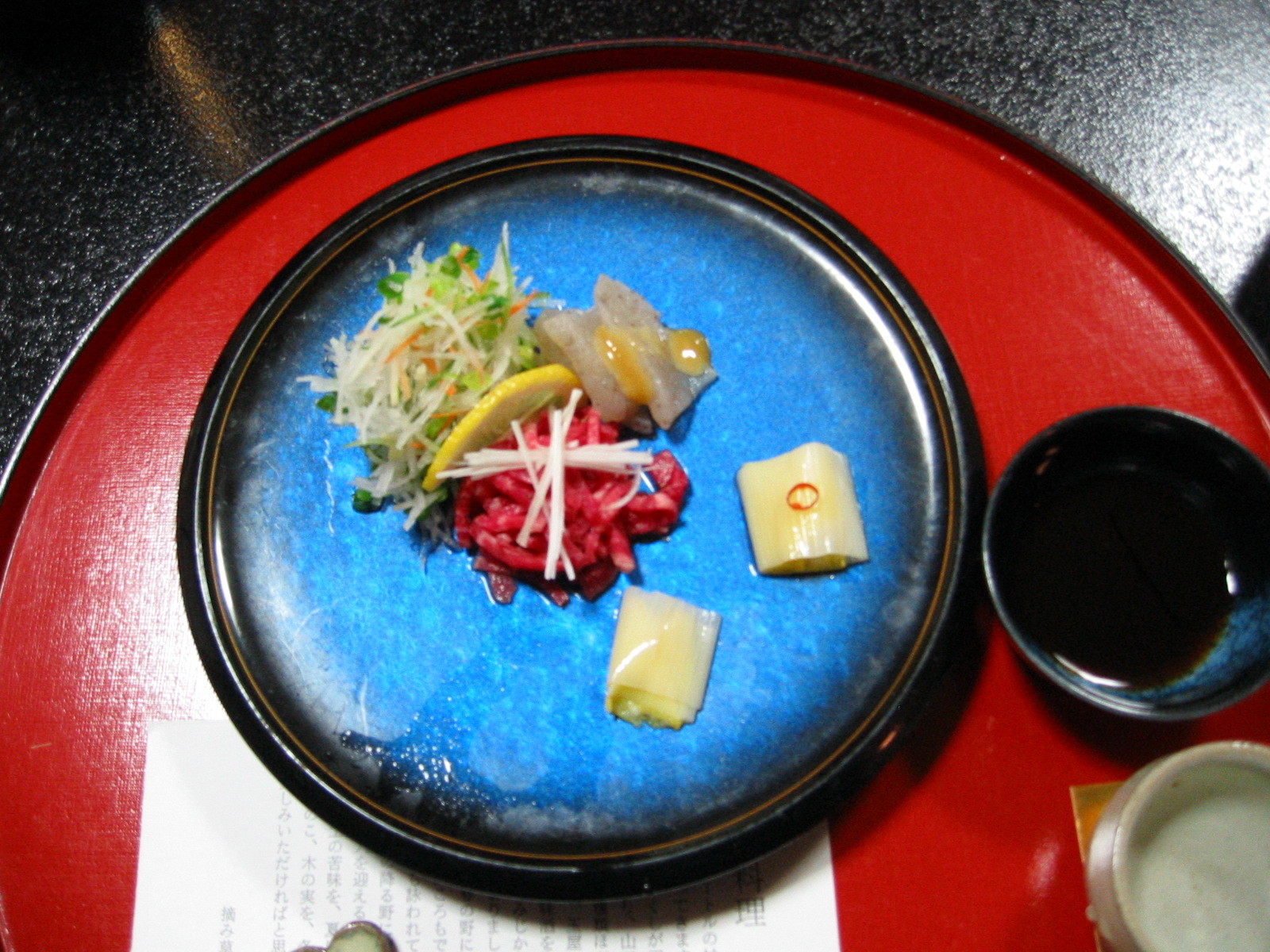 ここの料理は「摘み草料理」(http://homepage2.nifty.com/myogi_tamaya/info.htm)といい懐石風に一品ずつ運ばれてくる