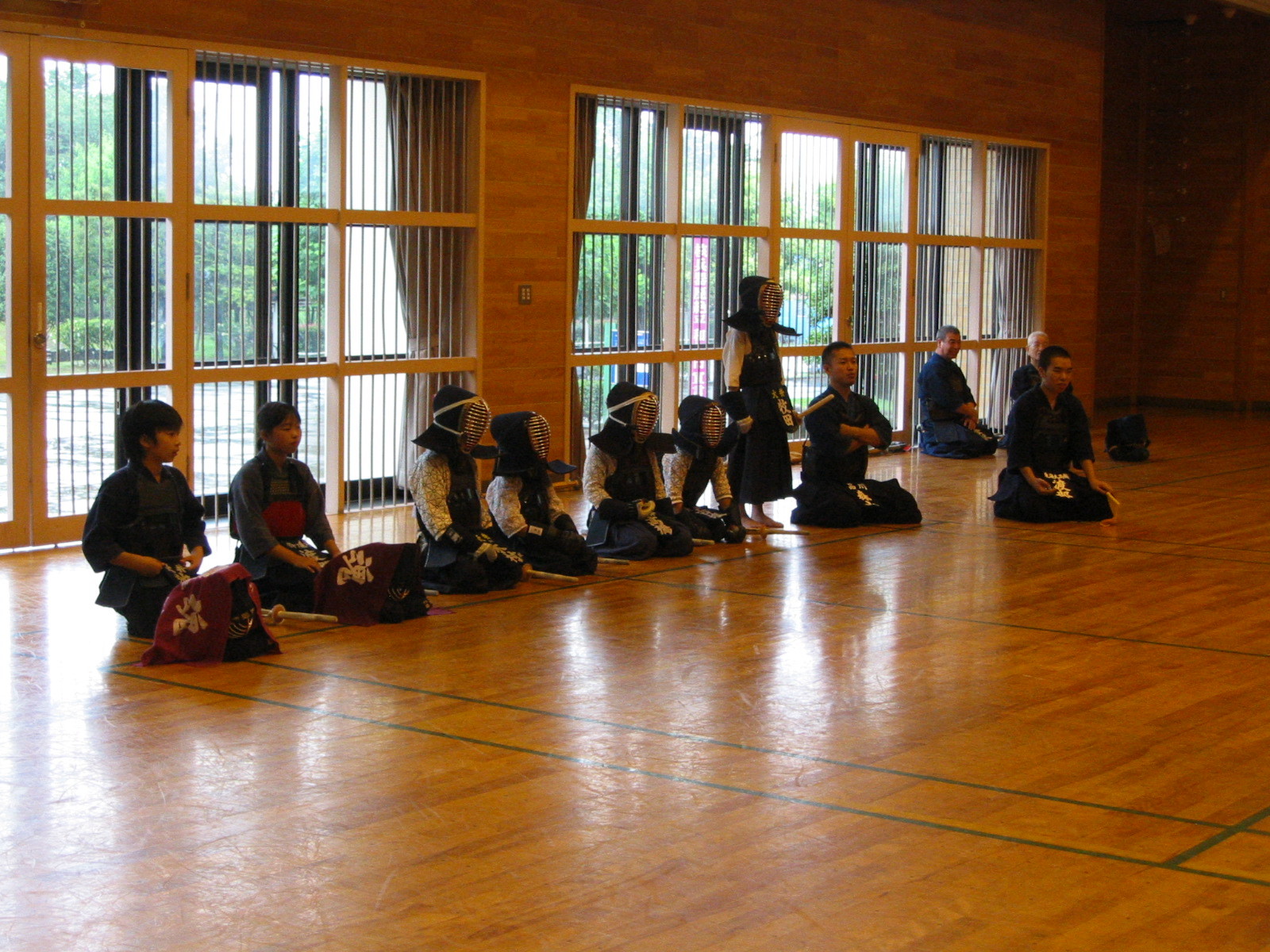 当日は生憎の雨であったが、元気に大井町を出発し、宮代町へ向かう。1時間半で到着し、ホテルへ荷物を置いて体育館へ。昼食のお弁当をそこで受け取り先ずは腹ごしらい。先方の父母会の方々がいろいろと気を利かせて下さる。そのうちに宮代町の剣友が集まってくる。13時から子どもの達の懇親試合を皮切りに全員で合同稽古を行なう。外は台風の影響で雨が強くなるが、体育館の中は溌剌とした気合に満ちた空気が流れる。