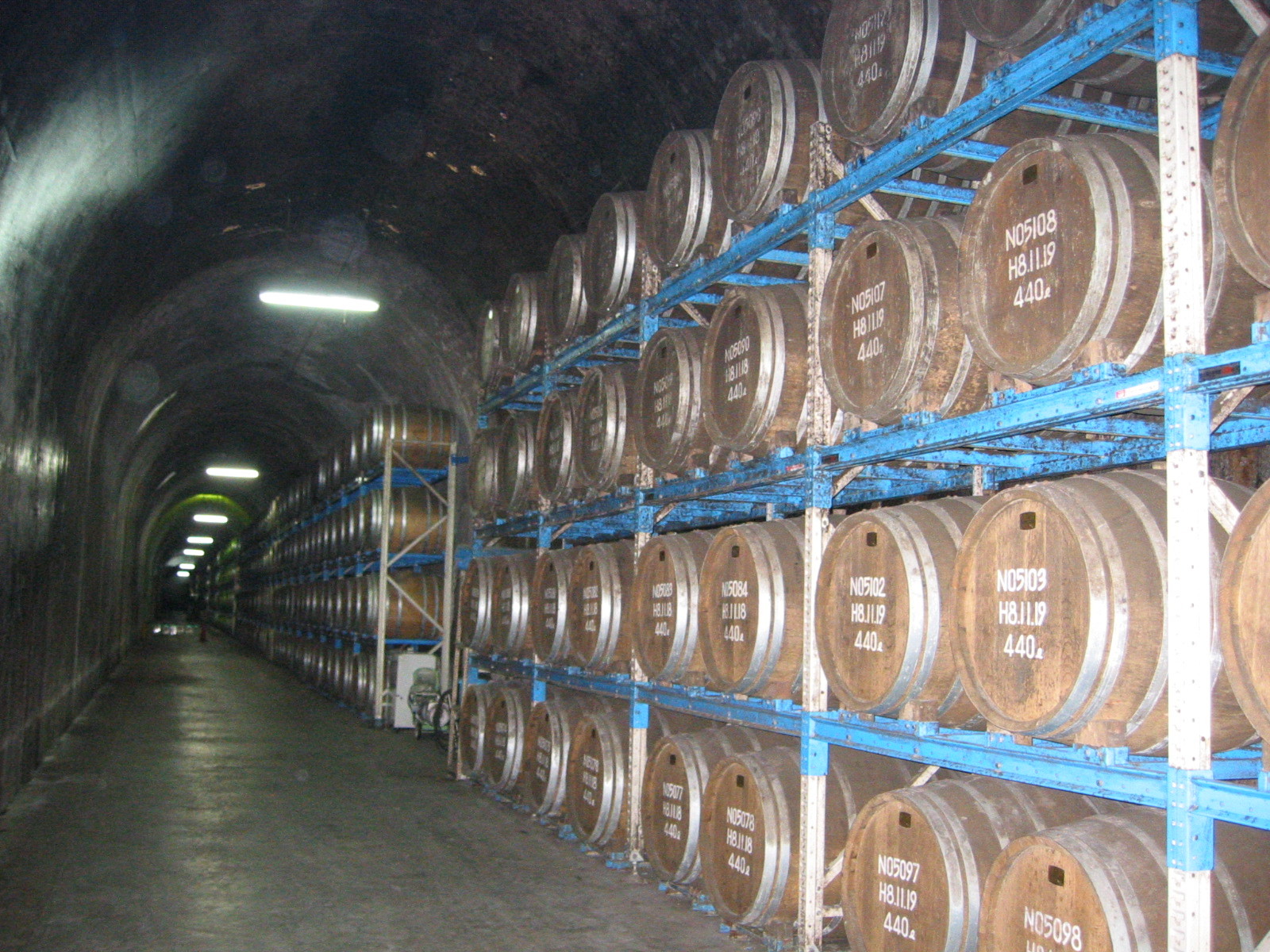神社を後にして車を走らせるとすぐに「トンネルの駅」という看板が見えてきた。何だろうと寄ってみるとそこはトンネルを利用した焼酎蔵で、麦焼酎の樽が5000本も眠っている。