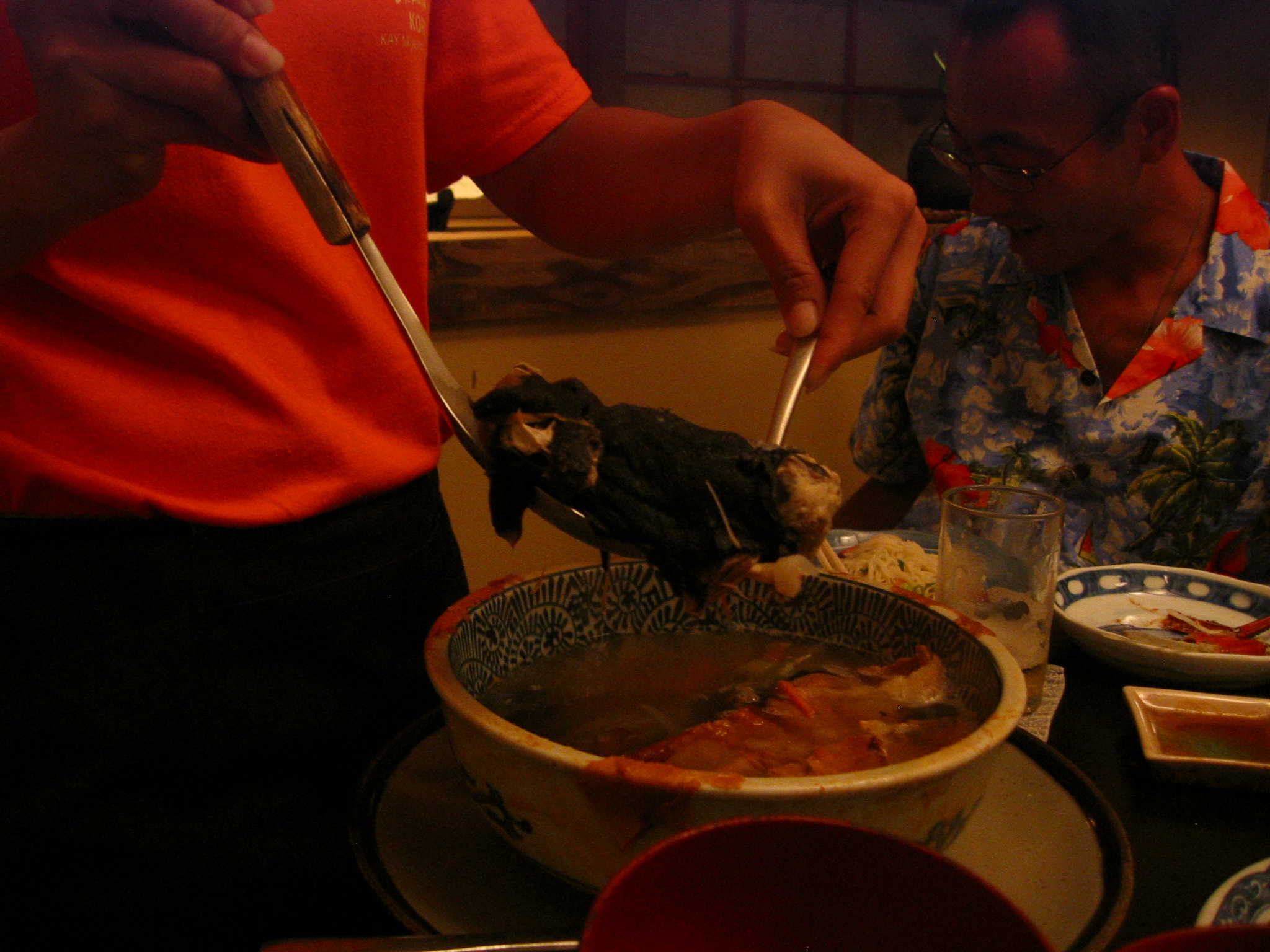 結局スープを飲み、具を食べたのは私とS氏だけであった。あとは試しに一口というだけで箸が進まない。それもそのはずフルーツバットのスープとはこうもりスープのことであった。それも丸ごとグロテスクなこうもりが入っている。それを店員が小分けしてくれるのだが私も一瞬箸が止まった。しかし勇気を出してスープを飲んでみると濃厚な味でこくがある。フルーツバットというだけあってこちらのこうもりはフルーツを食べている。