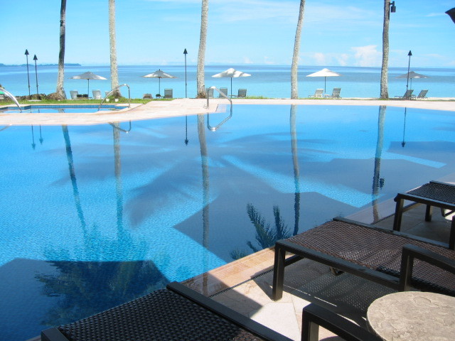 ホテルの入り口で美人の日本女性から絞りたての冷たいジュースを振舞われ、フロントでチェックインを済ませてとりあえず部屋へ案内される。