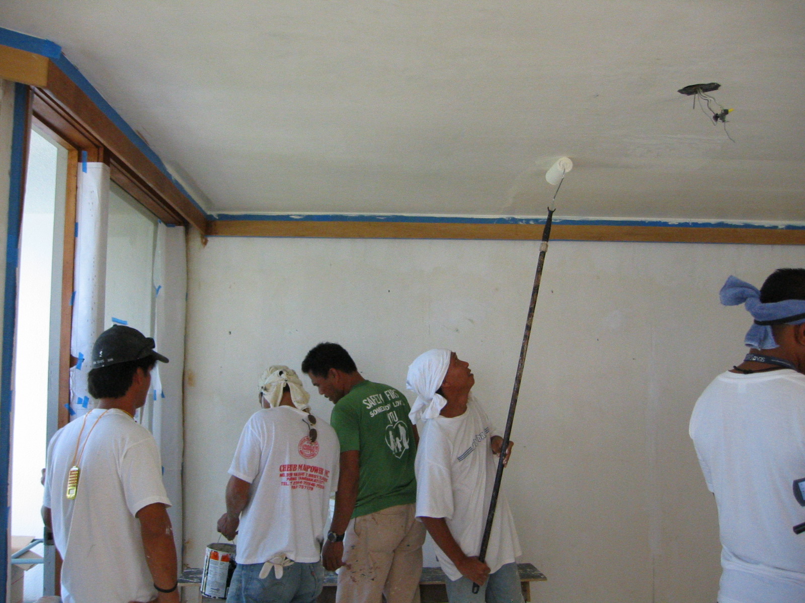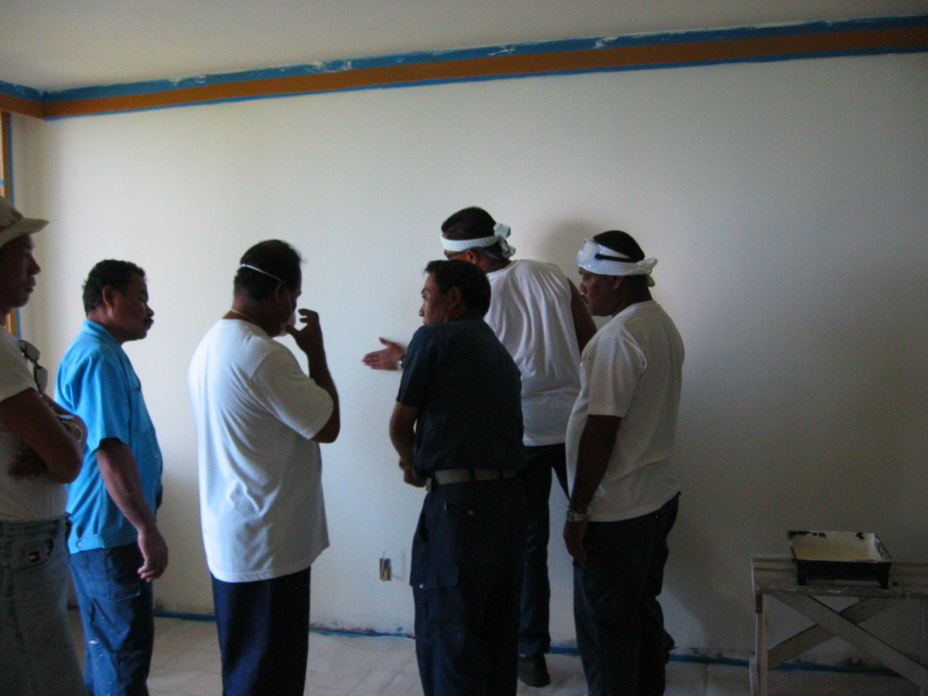 午前中は仕事の段取りと「ガイナ」の理解に時間を費やす。昼食後14時から再び全体ミーティングを行って現場監督を任命する。14時30分から養生を開始するが、作業手順が悪くなかなか進まない。日本とパラオではスピードがかなり違う。とりあえず一部屋をトレーニングとして指導し、明日から二手に分かれて実際に塗装する手順であったが、そのスケジュールは難しそうである。夕方進行が遅いため再びミーティングを行い工事の進め方を再確認する。