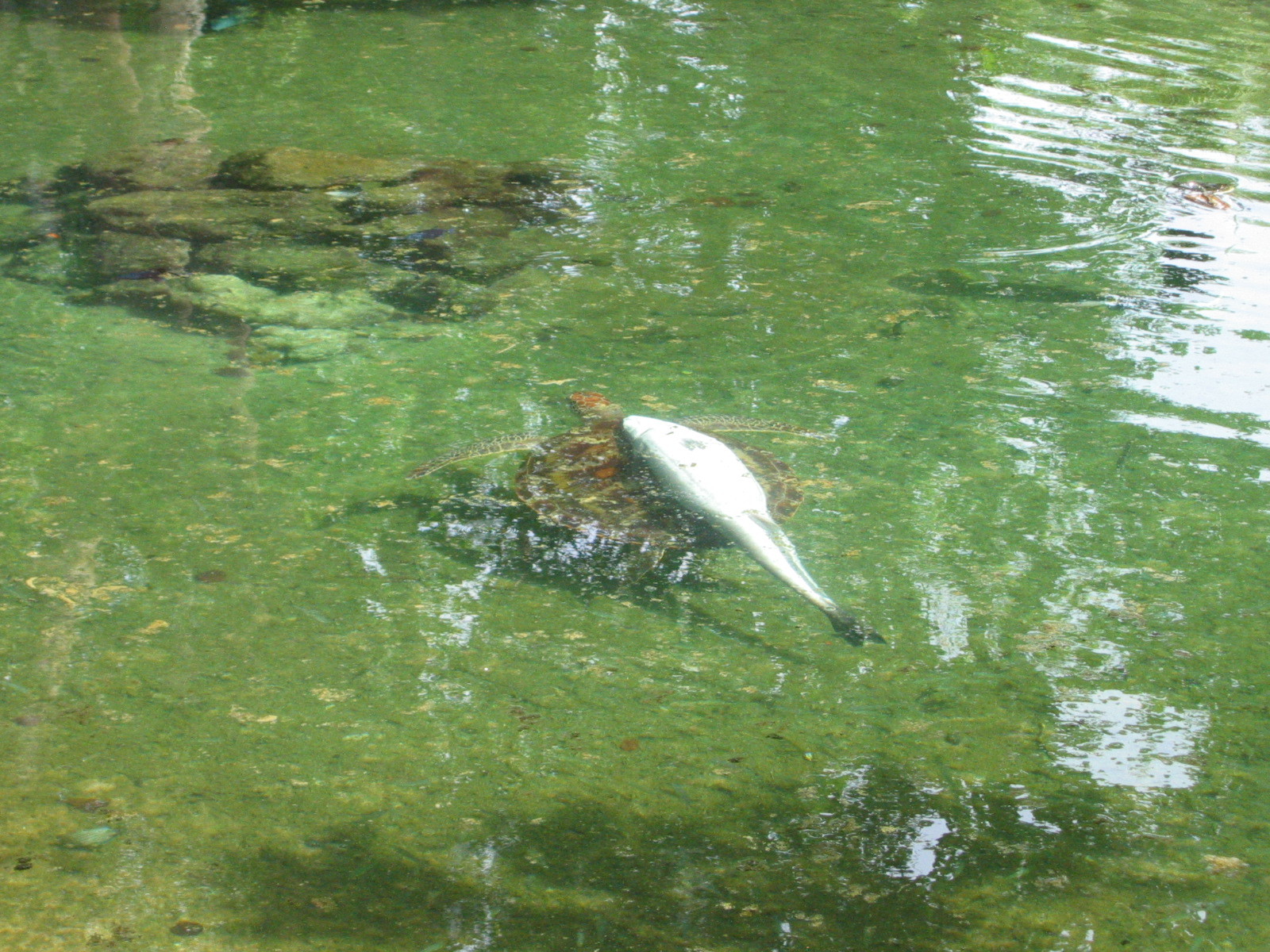 今回のクラスターの前には大きな池があり、いろいろな魚や亀が泳いでいる。小さなサメが亀の甲羅に仰向けになって乗っかって泳いでいる姿には思わずほほが緩んでしまう。南国は魚や亀までのんびりしている。