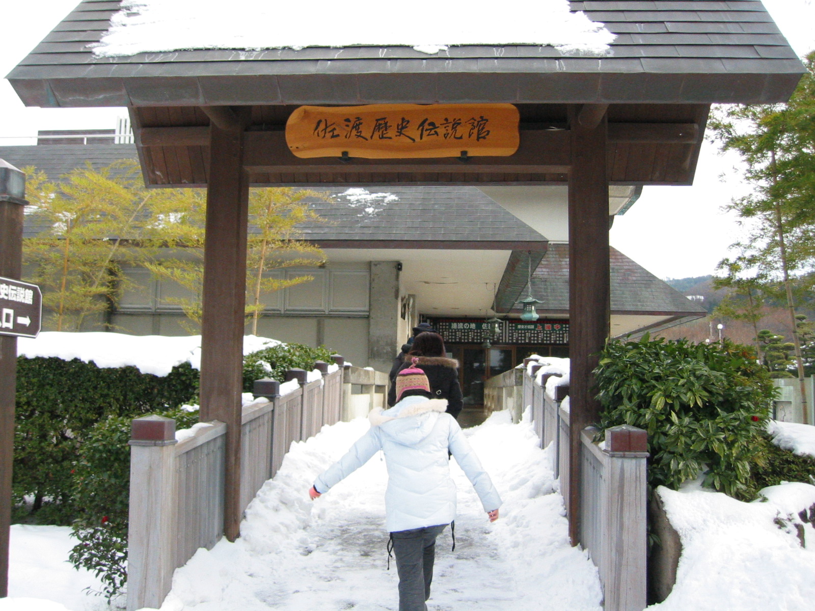 最後に佐渡博物館を見学したが、庭の端で頭に雪をのせたお地蔵さんが両手をあわせて、にっこり笑っていたのがとても印象的であった。