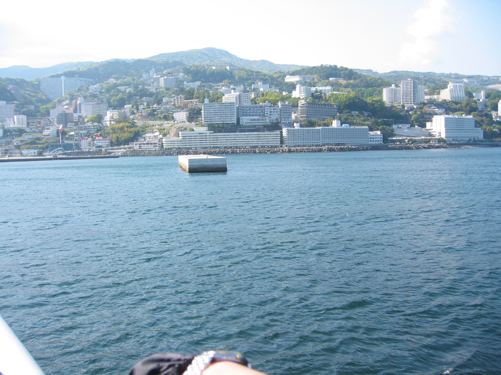 帰りは熱海に向かった。素朴な島から僅か11キロ、海上から見る熱海は要塞のように聳えたっている。ここは夜な夜な不夜城のような賑わいが繰り返されている。たった11キロであるが、海という仕切りでこれほど違うのかと眼を見張った。が、・・・