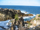 ここは昔の人気ドラマ「君の名は」のロケに使われた場所で、大変風光明媚なところである。切り立つ岩場と荒々しい日本海が絶妙な取り合わせとなって目の前に広がる。雪景色の中で見る尖閣湾の眺めは福井県の東尋坊(こちらの方が広大ではあるが)にも勝るとも劣らない。